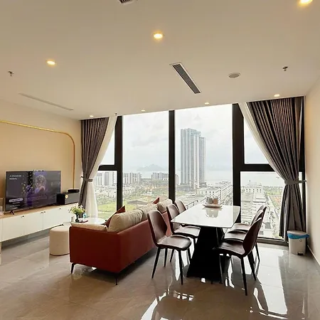 Halong Seaside Retreat - Icon40 Apartment includes a terrace, along with modern facilities like a flat-screen television to make your stay more enjoyable. Enhancing your comfort, a hot tub, a separate toilet, and a shower can be found at the accommodation. Moreover, there are a hair dryer, towels, and slippers as well.